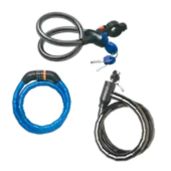 versch. Modelle: Sicherheitsschloss mit 4 Zahlenringen, Fahrrad- und Motorradschloss mit 2 Schlüsseln oder Spiralkabelschloss mit Lichtfunktion und Rohrhalterung