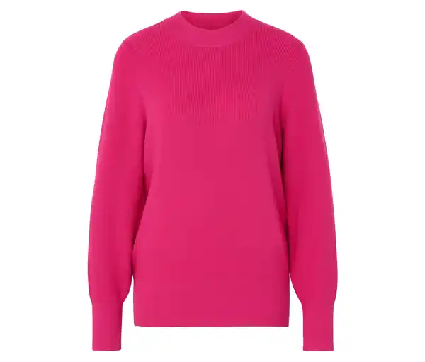 Feinstrickpullover, fuchsia Farbe: Fuchsia Material: 49% Viskose, 30% Polyester, 21% Polyamid Maße: Gesamtlänge ca. 64 cm (Gr. M 40/42) Passform: Regular Fit Breite Bündchen an Ärmelabschluss und SaumRundhalsausschnittWeiche Qualität mit Viskose