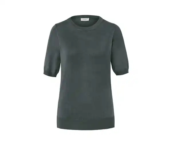 Feinstrickpullover, grün Farbe: Grün Material: 72% Viskose, 28% Polyester Maße: Gesamtlänge ca. 64 cm (Gr. M 40/42) Passform: Slim Fit Weiche Qualität mit ViskoseHalbarmElastische Rippbündchen an Ausschnitt, Ärmelabschluss und SaumRundhalsausschnittDieser Feinstrickpullover beinhaltet Fasern aus nachhaltigem Holz.