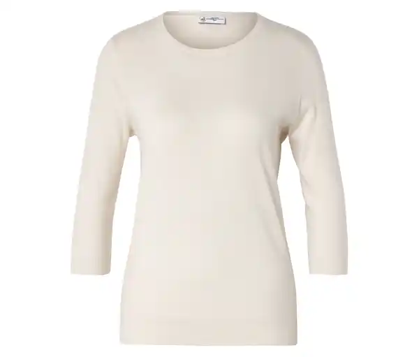 Feinstrickpullover mit Seide, creme Farbe: Creme Material: 60% Wolle, 30% Seide, 10% Kaschmir Maße: Gesamtlänge ca. 64 cm (Gr. M 40/42) Passform: Regular Fit Hochwertige Qualität aus Wolle, Seide und Cashmere3/4-ArmElastische Rippbündchen an Ärmelabschluss und SaumRundhalsausschnittDieses Produkt beinhaltet 60% RWS-zertifizierte Wolle, zertifiziert durch CU 809415The Good Cashmere Standard® zertifiziert