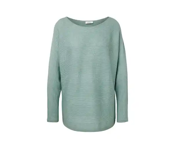 Feinstrickpullover, salbei Farbe: Salbei Material: 60% Baumwolle (aus ökologischem Anbau), 40% Viskose (Livaeco™) Maße: Gesamtlänge ca. 62 cm (Gr. M 40/42) Passform: Comfort Fit Weicher Baumwoll-Viskose-MixWeiter, runder AusschnittLanger FledermausarmStreifen-Effekt durch horizontalen StrickDieser Pullover beinhaltet Fasern aus nachhaltigem Holz.