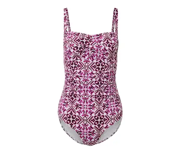 Figurformender Badeanzug, beerefarben-weiß Farbe: Beerefarben-weißer Alloverprint Material: 82% Polyamid, 18% Elasthan (LYCRA® XTRA LIFE™) Power-Mesh 85%. Polyamid, 15% Elasthan (LYCRA®) Futter 88% Polyester, 12% Elasthan (LYCRA®) Cups 100% Polyurethan Laminierung 100% Polyester Figurformendes Power-Mesh im Vorderteil für eine schlankere SilhouetteMit eingearbeiteten SoftcupsInnenliegendes UnterbrustgummiMit der Faser LYCRA® XTRA LIFE™ – noch chlorresistenter und UV-beständigerLängenverstellbare TrägerGr. 38 empfehlen wir 70–80 Cup B Gr. 40 und 42 empfehlen wir 75–85 Cup B–C Gr. 44 und 46 empfehlen wir 80–90 Cup C–D Gr. 48 empfehlen wir 85–95 Cup D–E