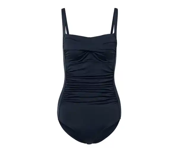 Figurformender Badeanzug, blau Farbe: Dunkelblau Material: 82% Polyamid, 18% Elasthan (LYCRA® XTRA LIFE™) Power-Mesh 85%. Polyamid, 15% Elasthan (LYCRA®) Futter 88% Polyester, 12% Elasthan (LYCRA®) Cups 100% Polyurethan Laminierung 100% Polyester Figurformendes Power-Mesh im Vorderteil für eine schlankere SilhouetteMit eingearbeiteten SoftcupsInnenliegendes UnterbrustgummiMit der Faser LYCRA® XTRA LIFE™ – noch chlorresistenter und UV-beständigerLängenverstellbare TrägerGr. 38 empfehlen wir 70–80 Cup B Gr. 40 und 42 empfehlen wir 75–85 Cup B–C Gr. 44 und 46 empfehlen wir 80–90 Cup C–D Gr. 48 empfehlen wir 85–95 Cup D–E