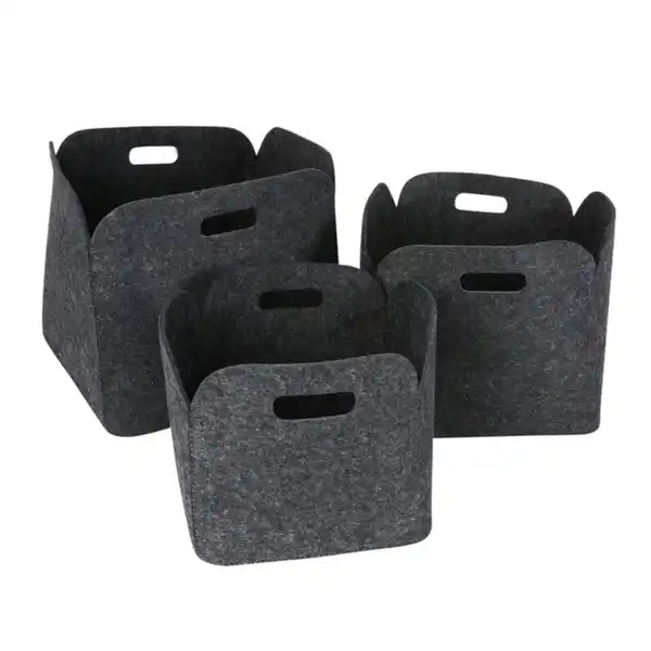 Drei schöne Filzkörbe in verschiedenen Größen mit eingearbeiteten Tragegriffen.