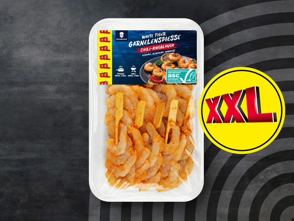 Fischerstolz ASC White Tiger Garnelenspieße XXL, 360 g Produkt bei Amazon suchen Produkt bei REWE suchen Verfügbarkeit Dieser Artikel war nur in der Filiale im Angebot. Lidl Filialen Produktbeschreibung Verschiedene Sorten Mehr Infos Empfehlungen Alle Krustentiere Angebote Die neuesten Krustentiere Angebote von Lidl Alle Angebote von Lidl auf einen Blick