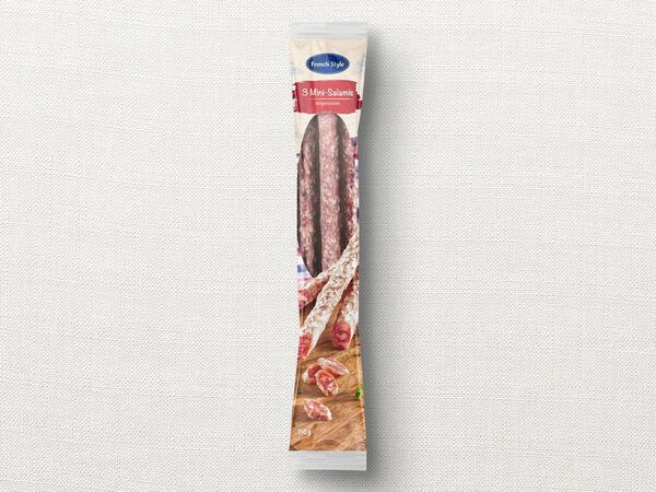 French Style Mini-Salamis, 150 g Produkt bei Amazon suchen Produkt bei REWE suchen Verfügbarkeit Dieser Artikel war nur in der Filiale im Angebot. Lidl Filialen Produktbeschreibung Luftgetrocknet Mehr Infos Empfehlungen Alle Salami Angebote Die neuesten Salami Angebote von Lidl Alle Angebote von Lidl auf einen Blick