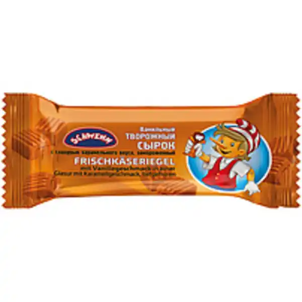 Frischkäseriegel mit Vanillegeschmack in einer Glasur mit Ka...