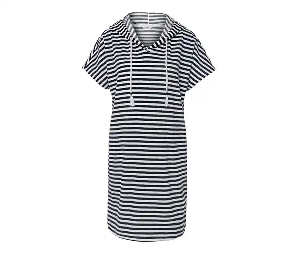 Frottee-Strandkleid, gestreift Farbe: Dunkelblau-weiß gestreift Material: 80% Baumwolle (Unterstützt die Initiative Cotton made in Africa), 20% Polyester (recycelt) Maße: Gesamtlänge ca. 90 cm (Gr. M 40/42) Weiche Qualität mit hohem BaumwollanteilAus kuschelig weicher FrotteewareMit Kapuze und KordelzugSeitenschlitze und EingrifftaschenMit recyceltem MaterialDieses Strandkleid unterstützt die Farmer*innen.