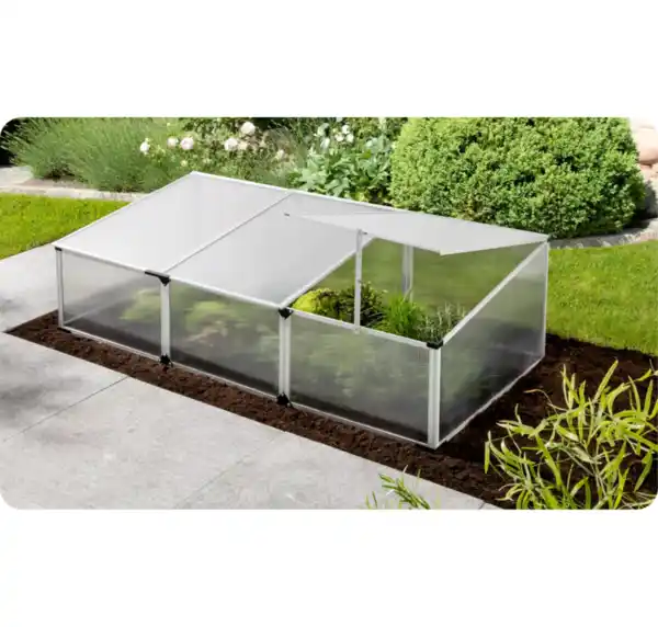 Aluminiumprofile, inkl. Bodenbefestigung, witterungsbeständig, 4-mm-Hohlkammerplatten, vormontiert, 146 x 71 x 40/30 cm (B x H x T) (o. Deko)