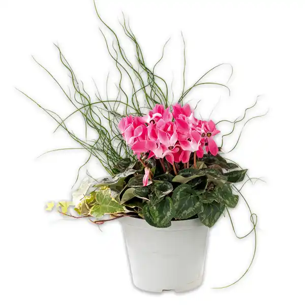 - Trio-Mix aus Alpenveilchen, Juncus Spiralis und Efeu