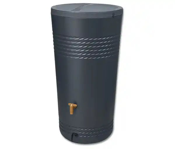 GARANTIA Regenspeicher, ca. 230 l, Komplett-Set Farbe: Graphit-grau Material: Polyethylen hoher Dichte Maße: Höhe ca. 114 cm Ø 59 cm Inhalt: Inkl. Regentonne, Kunststoff-Auslaufhahn Aqua-Quick in Messingoptik, Fallrohrfilter Füllautomat inkl. Filtereinsatz, Verschraubung, Verbindungsschlauch (25 cm), Zulaufdichtung DN19/32 Gewicht: Ca. 7,8 kg Füllmenge: Ca. 230 l Gebrauchsanweisung: Im Winter vollständig entleeren Warnhinweise: Dieses Produkt ist ausschließlich zur Speicherung von Regenwasser vorgesehen. Die Lagerung anderer Flüssigkeiten wird ausdrücklich nicht empfohlen. Stellen Sie den Behälter auf einen stabilen, ebenen Untergrund. Ein instabiler Stand kann zum Umkippen des Behälters und damit zu Verletzungsgefahr führen. Bewahren Sie sämtliches Verpackungsmaterial und Kleinteile außerhalb der Reichweite von Kindern sowie von Personen mit eingeschränkten physischen, sensorischen oder kognitiven Fähigkeiten auf. Lesen Sie die gesamte Gebrauchsanweisung sorgfältig durch und verwenden Sie das Produkt ausschließlich gemäß den darin enthaltenen Anweisungen. Abweichungen beim Aufbau oder der Nutzung können zu Schäden oder Verletzungen führen. Halten Sie den Deckel des Behälters stets geschlossen, um das Eindringen von kletternden Kindern, Schmutz, Insekten oder anderen Fremdkörpern zu verhindern. Von jeglichen Eigenkonstruktionen oder baulichen Veränderungen am Produkt wird dringend abgeraten, da dies zu Verletzungsgefahr führen kann. Bei Frostgefahr empfehlen wir die vollständige Entleerung des Behälters über die dafür vorgesehenen Öffnungen. Sonstige Hinweise: Artikel wird montiert geliefert Lieferung in 1 Packstück per Paketdienst Anlieferung bis zur Haustür Keine Inselbelieferung Lieferung in Spielstraße möglich B x H x T Packstück ca. 60 x 120 x 60 cm, Packstück ca. 7,8 kg Dekorativer Pflanzkübel und RegenwasserspeicherAnschlussfertiges Komplett-Set mit Auslaufhahn in Messingoptik und FallrohranschlussZuverlässige Filter- und Überlaufstopp-FunktionWartungsarmer Fallrohrfilter mit viel FilterflächeZusätzlicher Komfortanschluss für die WasserentnahmeInkl. Verbindungsschlauch 25cm und Zulaufdichtung DN19/32UV- und witterungsbeständig100% recycelbarMADE IN GERMANY