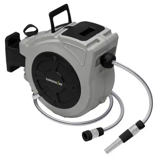 \n- Je Stück - Mit Tragegriff - Inklusive Schlauch und Verbindungsschlauch - UV-beständiges Gehäuse - Schlauchführung für einfach Auf- und Abrollen - Mit Langsamlauffunktion - Ca. 180° drehbar - 3 Jahre Garantie