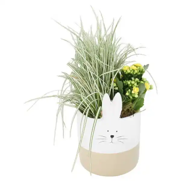 GARDENLINE Bepflanzter Kermamiktopf Hasengesicht