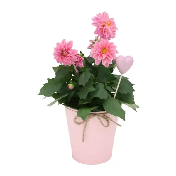 Im 12-cm-Kulturtopf; Metalltopf geriffelt, mit Dekoherz; Herkunft: Deutschland