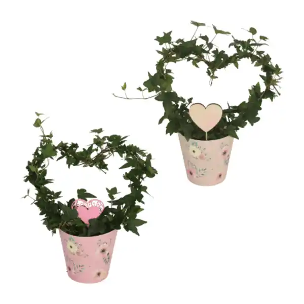 Im 12-cm-Kulturtopf, in passendem Papercup mit Blumenprint; inkl. Herz- oder Filzstecker