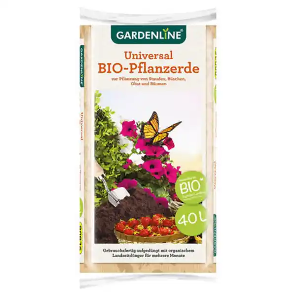 \n- Je 40-l-Packung - Universal BIO-Pflanzerde ist ein hochwertiges Pflanzsubstrat mit ausgewählten Rohstoffen und vielfältig einsetzbar. Es eignet sich durch seine ausgewogene Zusammenstellung sowohl für Anpflanzungen von Stauden, Gehölzen und Gemüsepflanzen im Freiland, wie auch für Topfpflanzen im Haus sowie auf Balkon und Terrasse