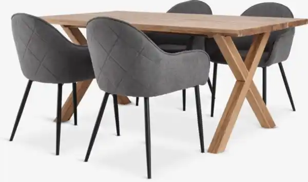 GRIBSKOV L180 Tisch Eiche + 4 SABRO Stühle grau/schwarz