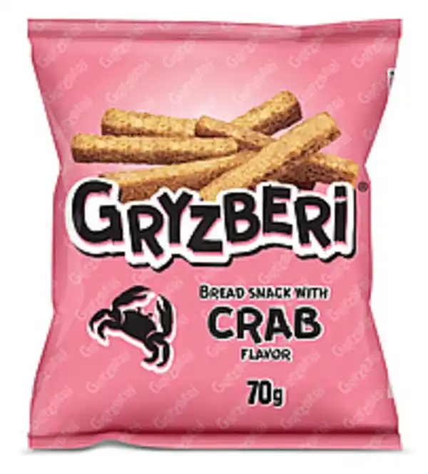 "GRYZBERI" Snack aus geröstetem Weizenbrot mit Krabbengeschm...