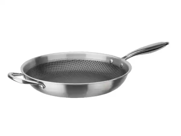 Die für Induktion geeignete Bratpfanne aus dem Hause GSW kann auf allen Herdarten benutzt werden und besitzt einen handsympathischen hitzeabweisenden Edelstahlgriff, sowie einen Gegengriff zur einfachen Handhabung. Die Pfanne besteht aus einem Dreischicht-Material (Edelstahl 18/8 innen, durchgängiger Aluminiumkern, magnetischer Edelstahl außen, dadurch induktionsfähig), welches eine perfekte und gleichmäßige Wärmeverteilung vom Boden bis zum Rand gewährleistet. Des Weiteren verfügt die Pfanne über eine PFAS-freie VITAFLON® QUARZIT Antihaft-Versiegelung mit ausgezeichneter Antihaftwirkung und erhabener Edelstahl-Wabenstruktur, welche die Antihaft-Versiegelung perfekt schützt und zudem extrem hart und kratzfest ist. Durch die Verwendung des Dreischicht-Materials bei der Herstellung dieser Pfanne, ist eine schnelle Erhitzung bei gleichzeitigem Energiesparen hier kein Widerspruch und die Pfanne eignet sich somit hervorragend für heißes und krosses Anbraten und die fettarme Zubereitung von Speisen. Mit dieser Bratpfanne aus dem Hause GSW wird die Küche um formschöne und praktische Utensilien ergänzt. Die Bratpfanne ist spülmaschinengeeignet und kann zudem im Backofen bei maximal 240°C verwendet werden.