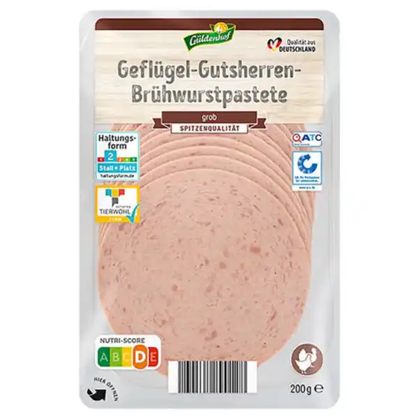 GÜLDENHOF Geflügel-Frischwurst-Aufschnitt 200 g, Gutsherrenpute