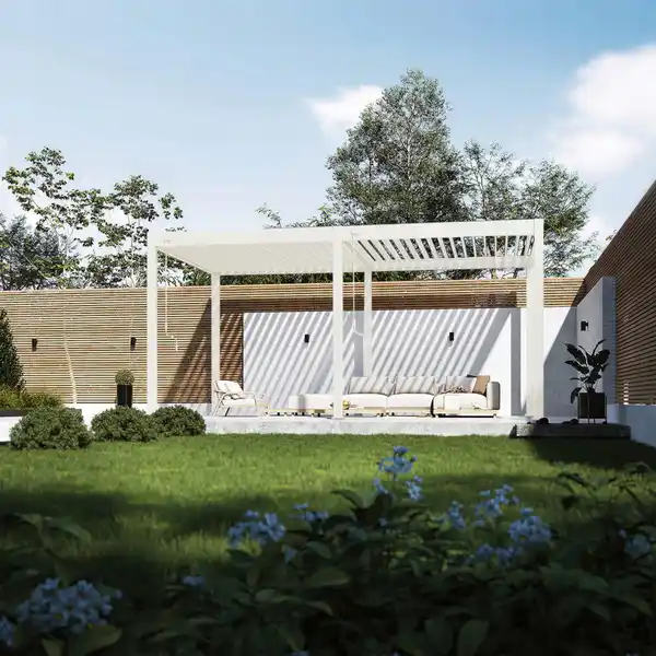 Unter dieser hochwertigen Gardenson Pergola (B x T: ca. 530 x 300 cm) in Weiß richten Sie sich draußen ganzjährig ein gemütliches Plätzchen im Freien ein. Denn sie besteht aus pulverbeschichtetem Aluminium und besitzt beste Eigenschaften für den dauerhaften Outdoor-Einsatz: Das Material ist nämlich sowohl regenabweisend und UV-beständig - also absolut wetterfest - als auch rostfrei. Der Clou sind die kippbaren Lamellen aus Stahl, die sich vollständig als dichtes Regendach schließen lassen: Sie können entweder die Sonnenstrahlen von oben genießen oder entspannt im Schatten sitzen. Selbst stärkere Windböen stellen für den stabilen Pavillon, der auf einem festen Betonfundament oder schweren Terrassenplatten stehen sollte, kein Problem dar. Diese ca. 255 cm hohe Pergola (ca. 530 x 300 cm) in Weiß mit integriertem Wasserableitungssystem schenkt Ihnen designstark Wohnfläche im Freien!