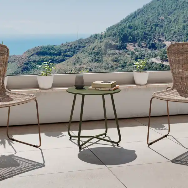 Der runde Gartenbeistelltisch Uni in grün ist die perfekte Ergänzung für Ihren Garten, Balkon oder Terrasse. Mit einem Durchmesser von ca. 45 cm und einer Höhe von 45 cm bietet dieser Tisch ausreichend Platz für Getränke, Snacks oder Dekoration. Die Tischplatte hat eine Materialstärke von 0,6 mm, was ihn stabil und robust für den Alltag macht. Dank der maximalen Belastbarkeit von ca. 30 kg eignet sich der Gartenbeistelltisch Uni für den Innen- und Außenbereich. Das moderne grüne Design in Kombination mit der U-förmigen Beinform sorgt für eine harmonische und stilvolle Optik, die in jeder Umgebung zum Hingucker wird. Ob als praktischer Tisch auf dem Balkon oder als dekorativer Akzent im Garten – der Gartenbeistelltisch Uni vereint Funktionalität mit einem zeitgemäßen Look und ist die ideale Wahl für Ihre Outdoor-Gestaltung.