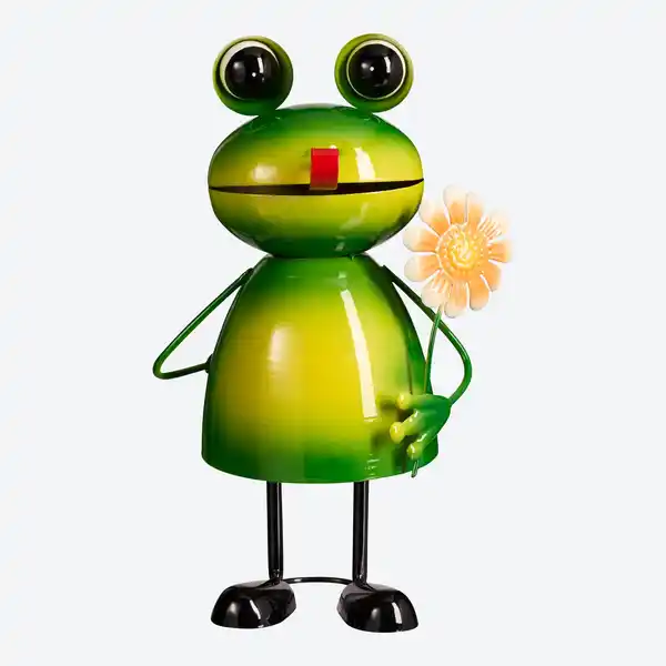 Diese Gartenfigur Wackeltier von Home ist eine dekorative Ergänzung für Ihren Außenbereich. Der Oberkörper der stilvollen Tierfiguren wackelt charmant im Wind und sorgt so für einen lebendigen Akzent in Ihrem Garten. Gartenfigur mit wackelndem Oberkörper Beliebte Tiermotive: Biene, Marienkäfer, Frosch Dekoratives Design für den Außenbereich Größe ca. 28x22,5x12 cm Aus robustem Eisen gefertigt Ideal für Garten, Terrasse oder Balkon