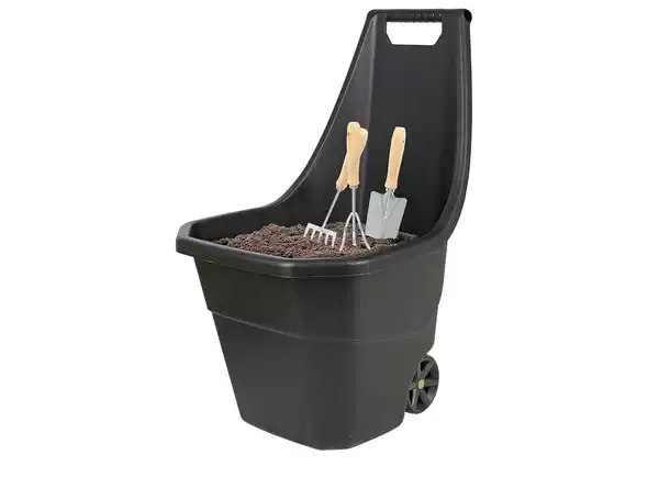 Praktische Gartenkarre aus Kunststoff in Eimerform, belastbar bis max. 50kg.