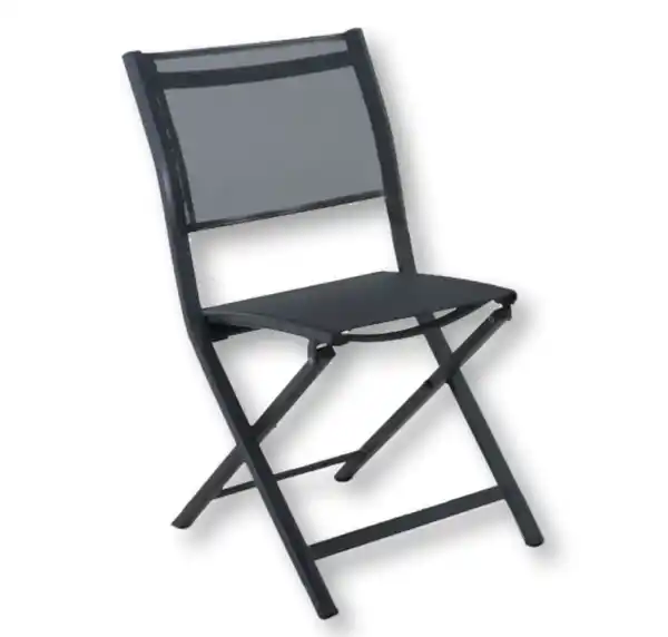 Klappstuhl: grau, Aluminiumgestell, pulverbeschichtet, Textilene-Bespannung, ca. 47 x 83 x 51 cm (B x H x T) (o. Deko)