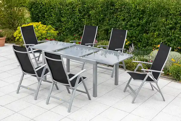 Gartentisch ausziehbar Metall/Glas L: 150 - 220 cm, Grau, Silberfarben