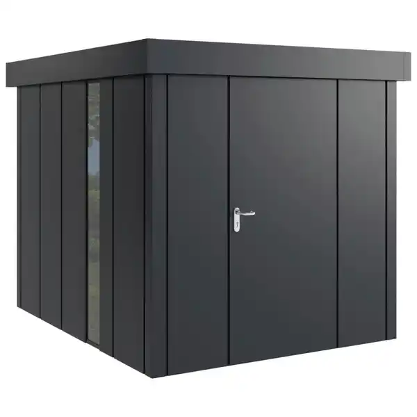 Gerätehaus, Anthrazit, Metall, 229x220x277 cm, innenseitige Entriegelungsmöglichkeit, wartungsfrei, Dachvorsprung, ohne Boden, Türe mit Gasdruckfeder, umfangreiche Grundausstattung, integrierter W