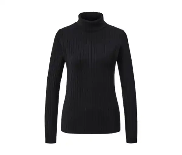 Gerippter Rollkragenpullover, schwarz Passform: [Slim Fit] Farbe: [Schwarz] Material: [50% Viskose, 28% Polyester, 22% Polyamid] Maße: [Gesamtlänge ca. 65 cm (Gr. M 40/42)] Weiche Qualität mit Viskose|Ganzflächige Rippstruktur|Körpernahe, figurbetonte Passform|Dieser Pullover beinhaltet Fasern aus nachhaltigem Holz.|Auf Schadstoffe geprüft – von externen, akkreditierten Instituten