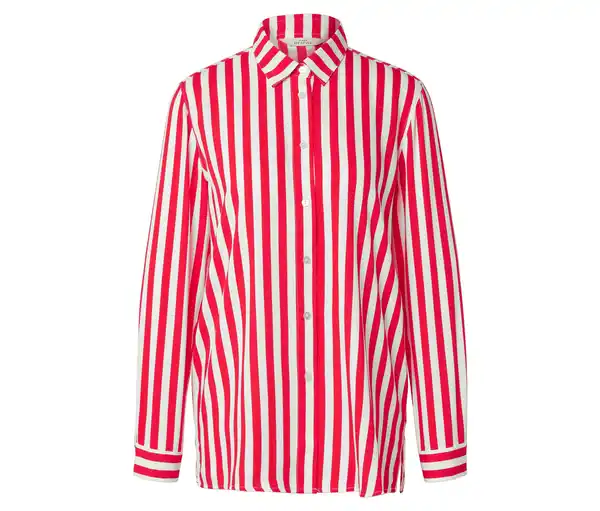 Gestreifte Bluse, rot Farbe: Rot-weiß gestreift Material: 82% Viskose, 18% Polyester Maße: Gesamtlänge ca. 74,5 cm (Gr. 40) Passform: Regular Fit Weich fließende Qualität mit ViskoseÄrmelabschluss mit geknöpfter ManschetteSaum mit SeitenschlitzenMit Kragen und Knopfleiste