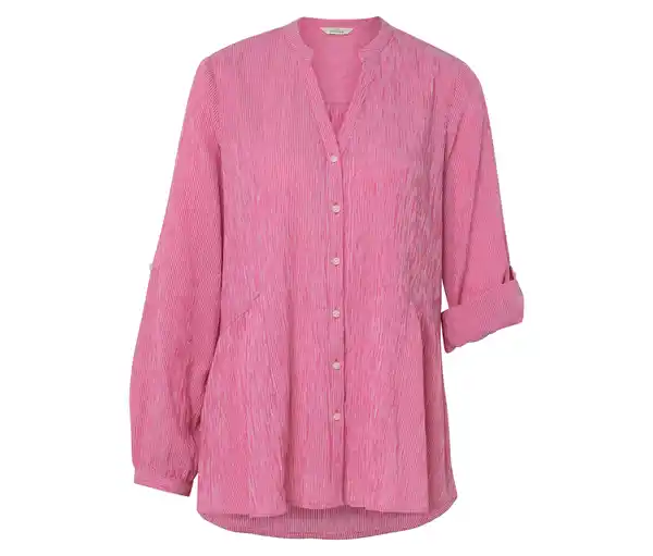 Gestreifte Longtunika Farbe: Pink-weiß gestreift Material: 100% Baumwolle Maße: Gesamtlänge ca. 79,5 cm (Gr. 40) Gebrauchsanweisung: Aufgrund der natürlichen Beschaffenheit von Baumwolle mit Crinkle-Effekt tendiert dieses Produkt zum Einlaufen. Wir empfehlen deshalb, das Produkt nach dem Waschen in Form zu ziehen und es sanft zu bügeln oder zu dämpfen. Passform: Regular Fit Weich fließende, gecrinkelte Qualität aus reiner BaumwolleKrempelbare Ärmel – mit Riegel fixierbarSeitlicher Einsatz mit Raffung für eine feminine SilhouetteTunika-Ausschnitt mit leichtem StehkragenLeicht abgerundeter Saum mit verlängerter RückenpartieMit KnopfleisteÄrmelabschluss mit geknöpfter ManschetteRückenpasse mit leichter Raffung