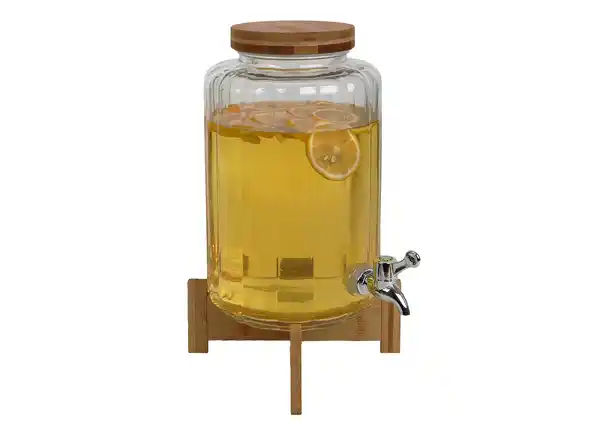 Glas mit Bambusdeckel, Zapfhahn und Bambusständer, ca. 4,5 Liter