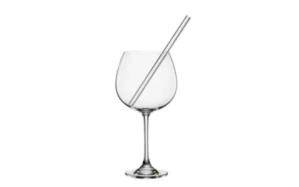 4-teiliges Gin Gläser Set aus hochwertigem Kristallglas bestehend aus zwei Gläser und zwei Trinkhalme, spülmaschinengeeignet.