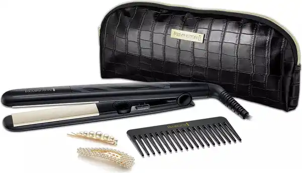 Remington Glätteisen S3505GP StyleeditionErzielen Sie mit dem Remington S3505GP StyleEdition Haarglätter zu Hause glattes, salonähnliches Haar.Dieser leistungsstarke Haarglätter wurde für müheloses Styling entwickelt, heizt sich schnell auf und sorgt für eine gleichmäßige Wärmeverteilung für konsistente, professionelle Ergebnisse.Seine keramikbeschichteten Platten gleiten sanft durch Ihr Haar, minimieren Frizz und reduzieren statische Aufladung für ein glänzendes Finish.Mit einstellbaren Temperatureinstellungen gibt Ihnen der S3505GP die volle Kontrolle über Ihren Look – egal, ob Sie einen glatten, glänzenden Stil oder weiche, kontrollierte Wellen wünschen.Außerdem ist er dank des mitgelieferten Zubehörs ein perfektes Geschenk oder ein idealer Reisebegleiter.Stylen Sie mit Selbstvertrauen und genießen Sie den Komfort einer vertrauenswürdigen Marke, die Leistung und Pflege an erste Stelle setzt. - Plattentyp: Keramikbeschichtet für sanftes Gleiten und antistatische Wirkung- Aufheizzeit: Schnelles Aufheizen in 15 Sekunden- Temperatureinstellungen: Einstellbar bis zu 230 °C- Schwimmende Platten: Für gleichmäßigen Druck und Stylingkontrolle- Automatische Abschaltung: Sicherheitsabschaltung nach 60 Minuten- Zubehör: Inklusive Kosmetiktasche, Haarspangen und Kompaktspiegel- Kabel: Drehbares Kabel für einfache Handhabung