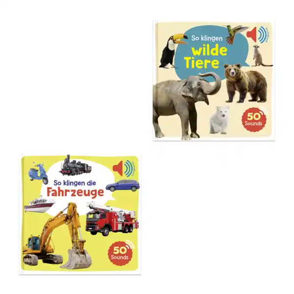 Ab 3 Jahren; 14 Seiten; mit Bildern, Texten und 50 Sounds; verschiedene Titel