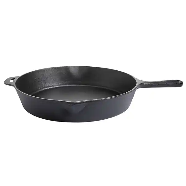 Gusseisen-Pfanne extra groß mit kurzem Stiel, rund, schwarz, 39 cm Durchmesser