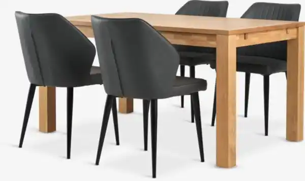 HAGE L150 Tisch Eiche natur + 4 LUNDERSKOV Stühle anthrazit