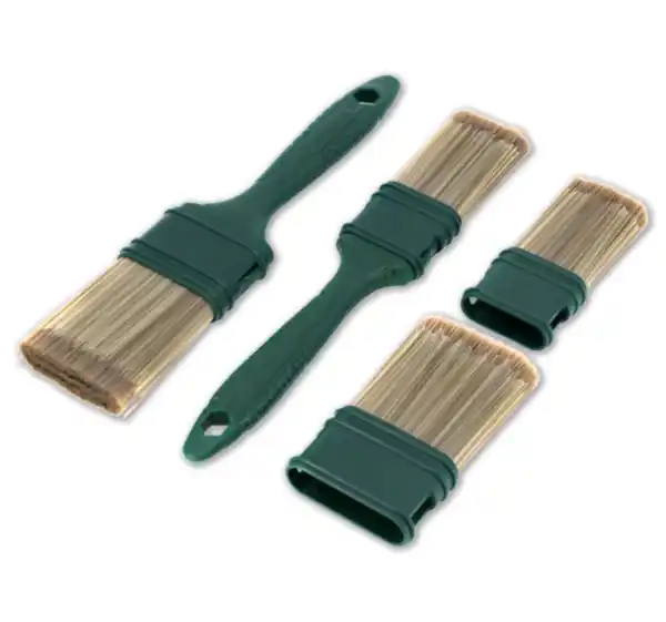 Abnehmbare Wechselköpfe mit einfachem Klick-System, fertig montiert, Vorteil: Bei Verschleiß muss nur der Pinselkopf ausgetauscht werden, der Pinselgriff kann weiter verwendet werden