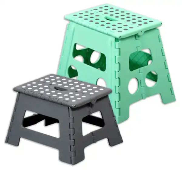 Klappbar zum platzsparenden Verstauen, rutschhemmende Noppen, gummierte Füße, versch. Farben, Belastbarkeit bis zu 150 kg
