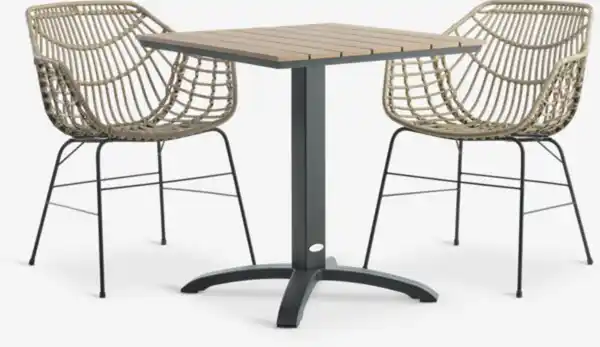 Rahmen: Stahl, Rückenlehne: Polyrattan (Polyethylen), Sitz: Polyrattan (Polyethylen), Armlehne: Polyrattan (Polyethylen), Beine: Stahl