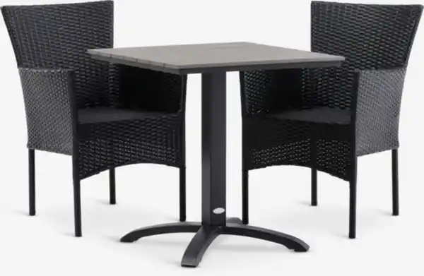 HOBRO L70 Tisch grau + 2 AIDT Stühle schwarz