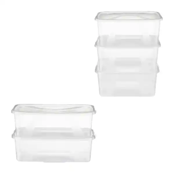 Polypropylen; Set: große Boxen, 3 Stück, Volumen: je ca. 19 L, mittlere Boxen, 2 Stück, je ca. 5 L, und kleine Boxen, 3 Stück, je ca. 2 L