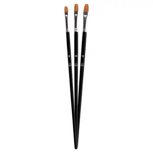 • Long Tak Paintbrushes Filbert, flach oder rund – Perfekt für glatte, schwungvolle Linien und gleichmäßige Deckung. Konzipiert für Künstler, die Präzision mit Flexibilität lieben. Mit drei verschiedenen Größen (Nr. 6, 10 und 12) in einem Set haben Sie für jedes Detail den richtigen Pinsel