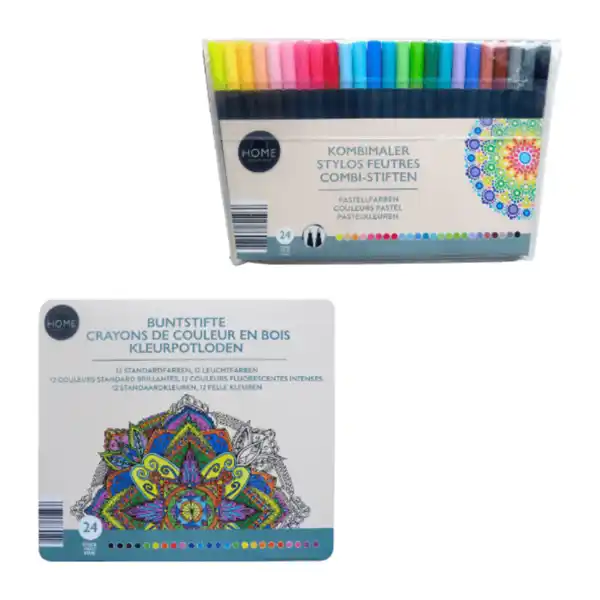 - 24 Standardfarben (davon 3 Leuchtfarben) oder 24 Pastellfarben