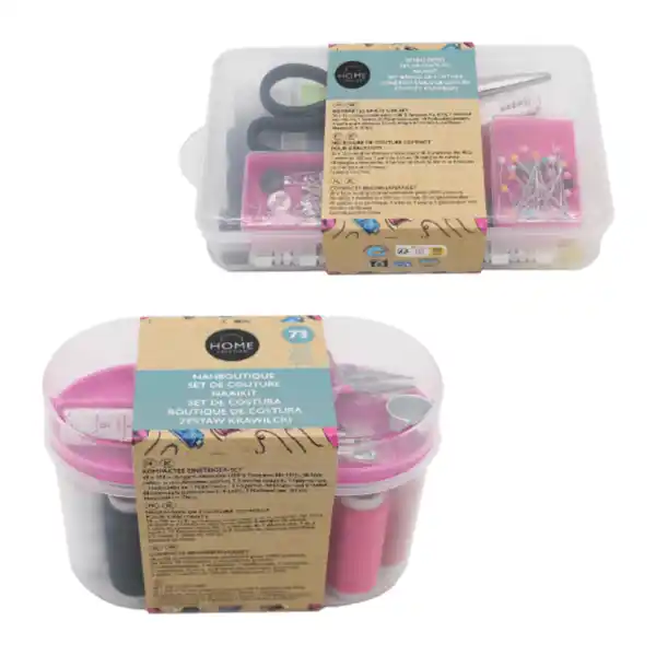 - 18x 100 m Syngarn-Allesnäher (100 % Polyester, Ne 40/2), 30 Näh- nadeln in verschiedenen Größen, 2 Sicherheitsnadeln, 1 Fadenschere, 1 Nadeleinfädler, 1 Nahttrenner, 1 Fingerhut, 10 Druck- und 8 Hemd-/ Blusenknöpfe (schwarz/weiß, 4-Loch) und 1 Maßband von 150 cm