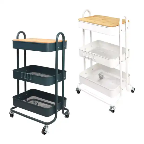 Gestell pulverbeschichtetes Metall, Ablagefläche Bambus; inkl. 4 Haken; 4 Rollen; verschiedene Farbvarianten