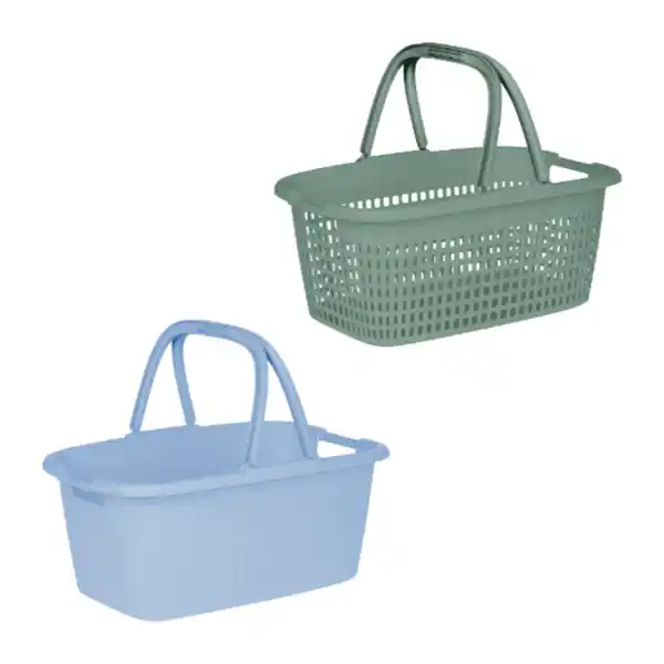 Polypropylen; mit Henkel, Griffmulden und verstärktem Drehrand; verschiedene Farbvarianten